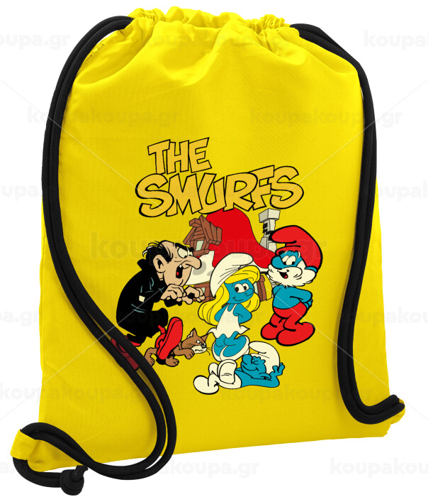 The smurfs, Backpack pouch GYMBAG Yellow, with pocket (40x48cm) & thick cords
