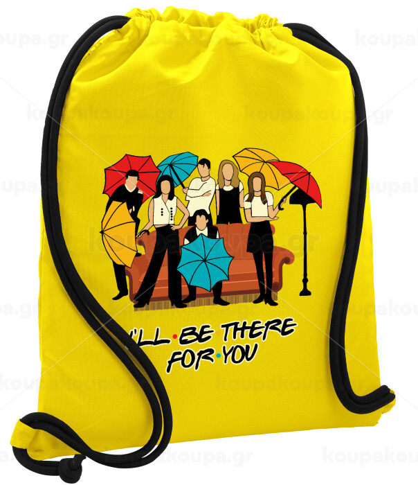 Friends cover, Backpack pouch GYMBAG Yellow, with pocket (40x48cm) & thick cords