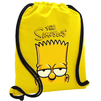 The Simpsons Bart, Backpack pouch GYMBAG Yellow, with pocket (40x48cm) & thick cords