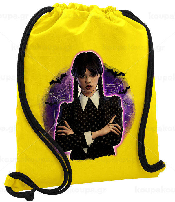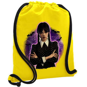 Wednesday moonlight, Backpack pouch GYMBAG Yellow, with pocket (40x48cm) & thick cords