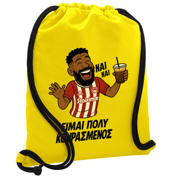 Ροντινέι, "ΠΟΛΥ ΚΟΥΡΑΣΜΕΝΟΣ", Backpack pouch GYMBAG Yellow, with pocket (40x48cm) & thick cords