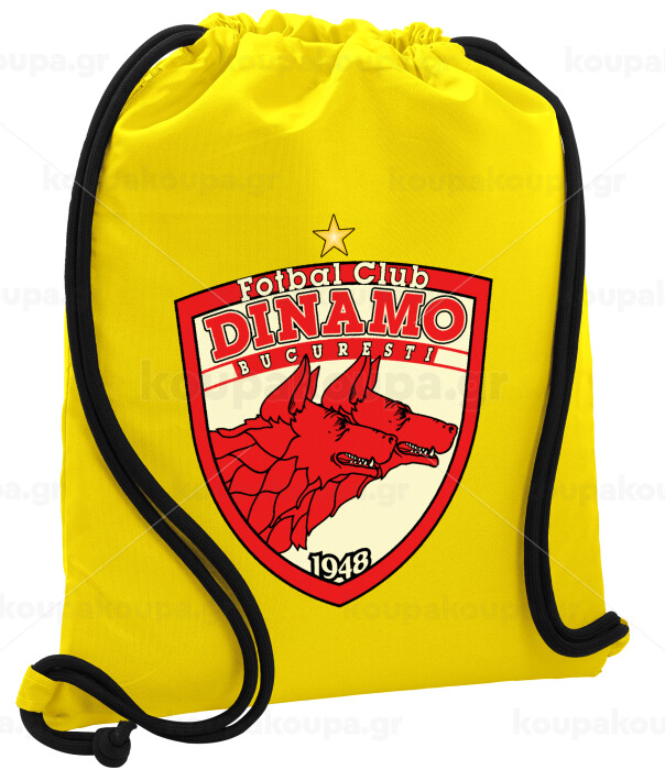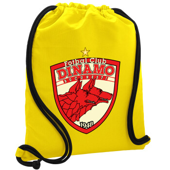 FC Dinamo Bucuresti, Backpack pouch GYMBAG Yellow, with pocket (40x48cm) & thick cords