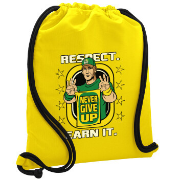 John Cena, Backpack pouch GYMBAG Yellow, with pocket (40x48cm) & thick cords