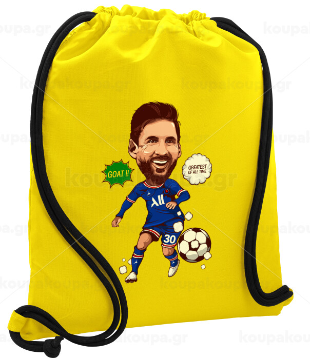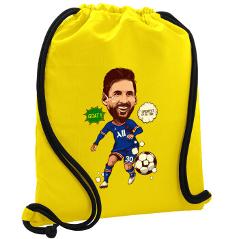 Lionel Messi drawing, Backpack pouch GYMBAG Yellow, with pocket (40x48cm) & thick cords