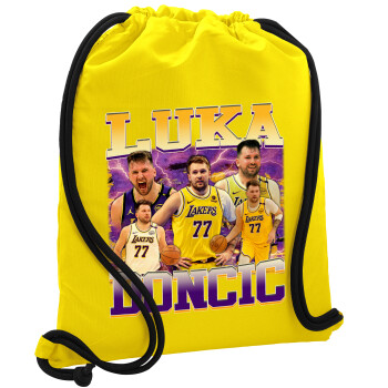 Luka Doncic Basketball , Backpack pouch GYMBAG Yellow, with pocket (40x48cm) & thick cords