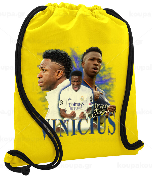 Vinicius Junior, Backpack pouch GYMBAG Yellow, with pocket (40x48cm) & thick cords