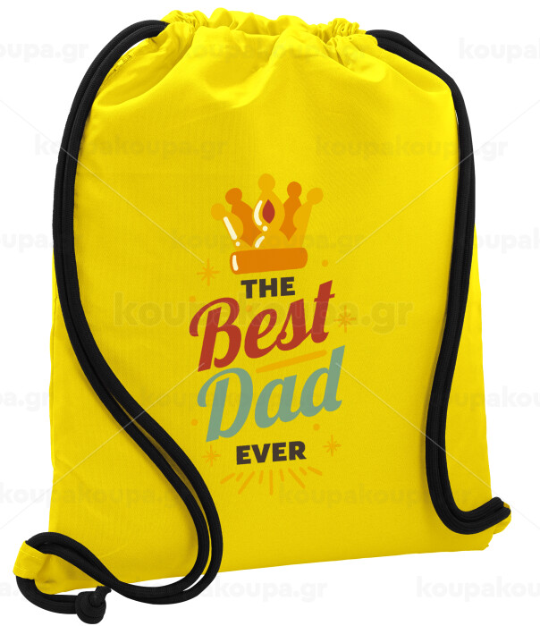The Best DAD ever, Backpack pouch GYMBAG Yellow, with pocket (40x48cm) & thick cords