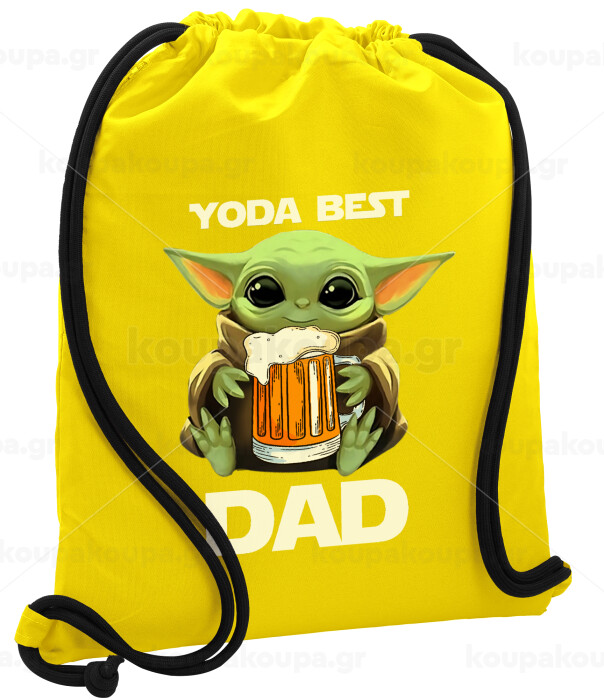 Yoda Best Dad, Backpack pouch GYMBAG Yellow, with pocket (40x48cm) & thick cords