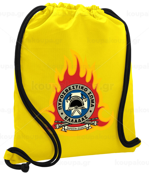 Πυροσβεστικό σώμα Ελλάδος σκούρο, Backpack pouch GYMBAG Yellow, with pocket (40x48cm) & thick cords