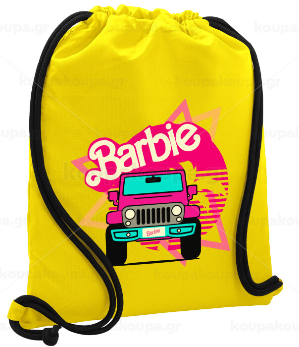 Barbie car, Backpack pouch GYMBAG Yellow, with pocket (40x48cm) & thick cords