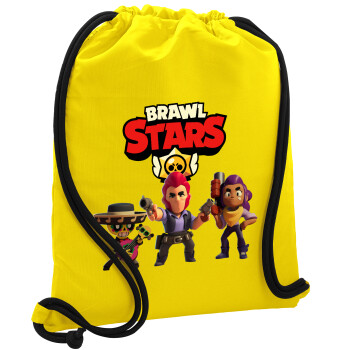 Brawl Stars Desert, Backpack pouch GYMBAG Yellow, with pocket (40x48cm) & thick cords