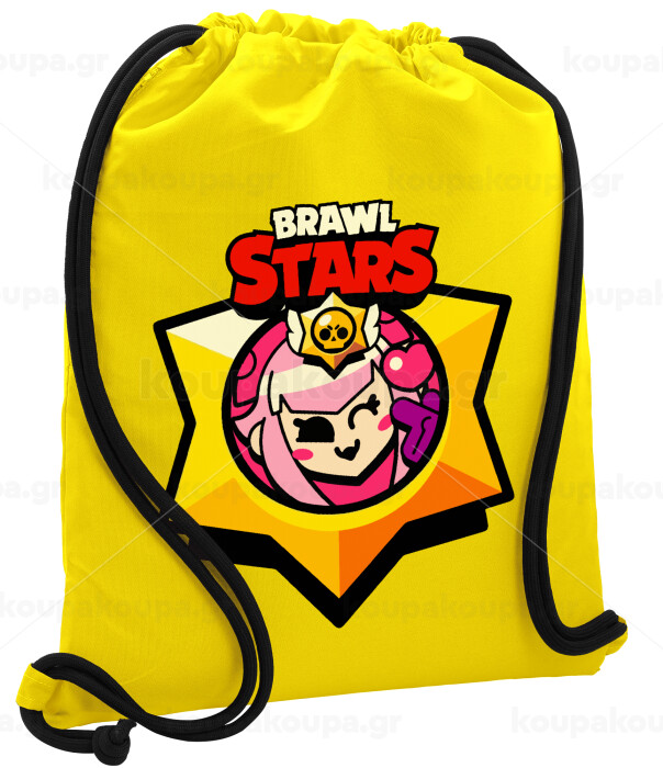 Brawl Stars Melodie, Backpack pouch GYMBAG Yellow, with pocket (40x48cm) & thick cords