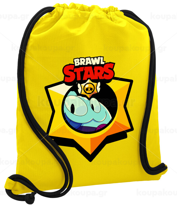 Brawl Stars Squeak, Backpack pouch GYMBAG Yellow, with pocket (40x48cm) & thick cords
