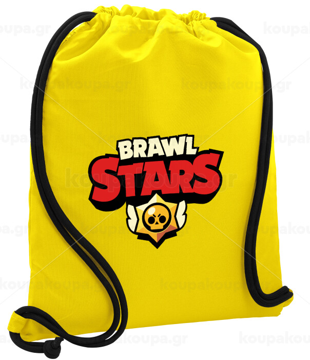 Brawl Stars, Backpack pouch GYMBAG Yellow, with pocket (40x48cm) & thick cords