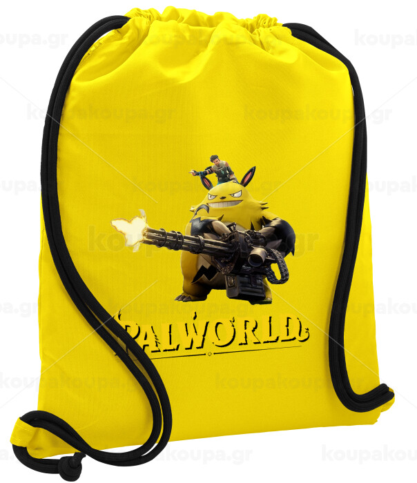 Palworld, Backpack pouch GYMBAG Yellow, with pocket (40x48cm) & thick cords