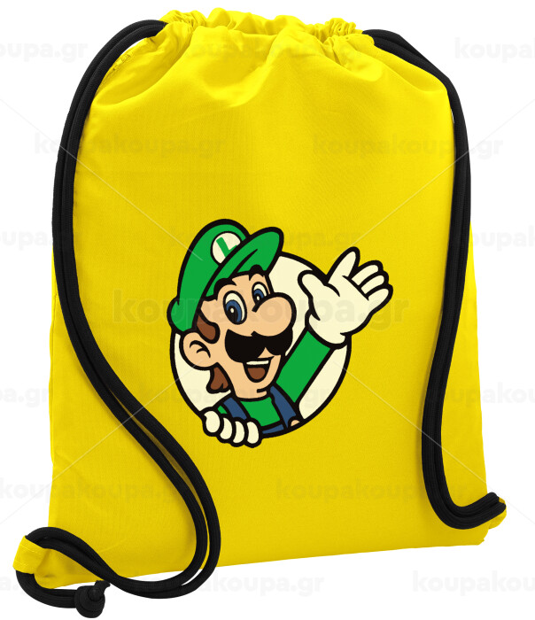 Super mario Luigi win, Backpack pouch GYMBAG Yellow, with pocket (40x48cm) & thick cords