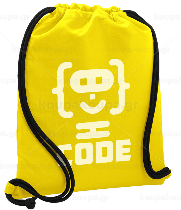 Code Heroes symbol, Backpack pouch GYMBAG Yellow, with pocket (40x48cm) & thick cords