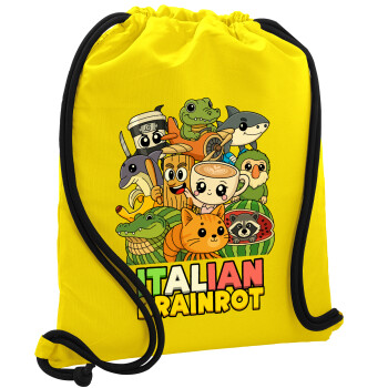 Italian Brainrot friends, Backpack pouch GYMBAG Yellow, with pocket (40x48cm) & thick cords