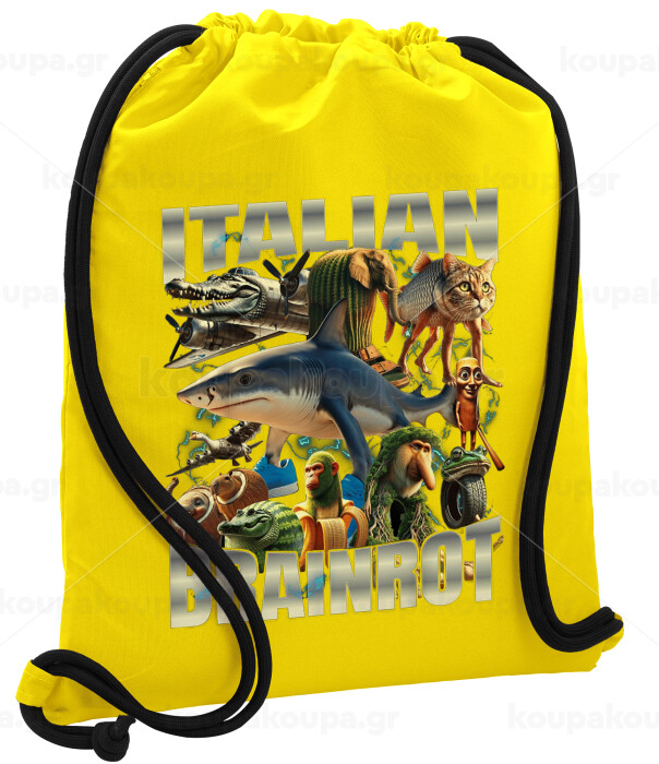 Italian Brainrot, Backpack pouch GYMBAG Yellow, with pocket (40x48cm) & thick cords