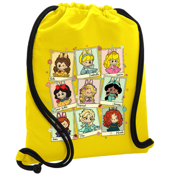 Labubu characters, Backpack pouch GYMBAG Yellow, with pocket (40x48cm) & thick cords
