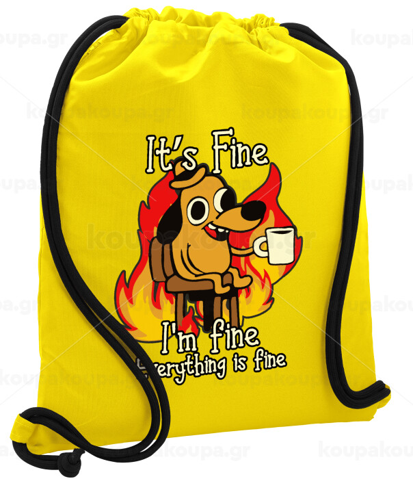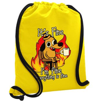 It's Fine I'm Fine Everything Is Fine, Backpack pouch GYMBAG Yellow, with pocket (40x48cm) & thick cords
