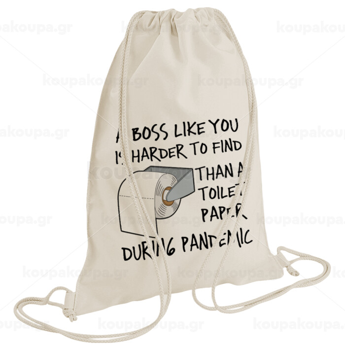 A boss like you is harder to find, than a toilet paper during pandemic, Backpack bag GYMBAG natural (28x40cm)