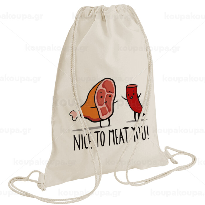 Nice to MEAT you, Backpack bag GYMBAG natural (28x40cm)