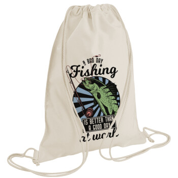 A bad day FISHING is better than a good day at work, Backpack bag GYMBAG natural (28x40cm)