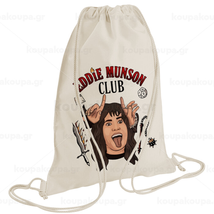 Eddie Munson, Hellfire CLub, Stranger Things, Backpack bag GYMBAG natural (28x40cm)