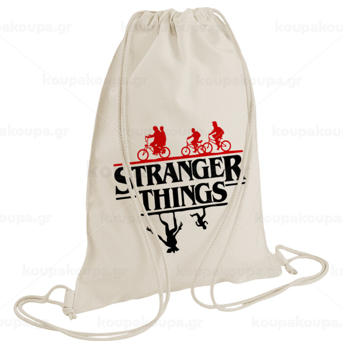 Stranger Things upside down, Backpack bag GYMBAG natural (28x40cm)