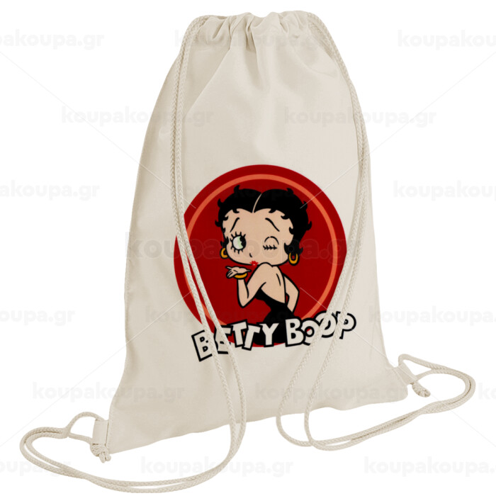 Betty Boop kiss, Backpack bag GYMBAG natural (28x40cm)