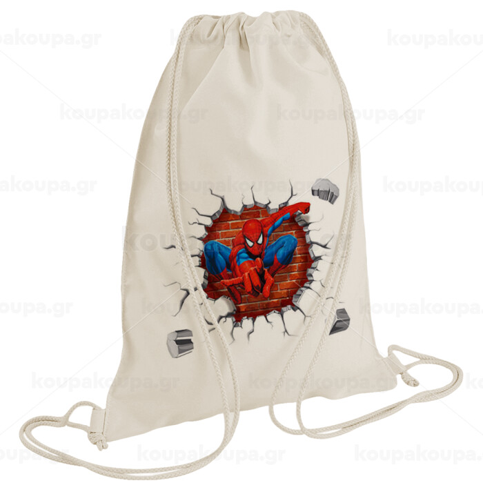 Spiderman wall, Backpack bag GYMBAG natural (28x40cm)