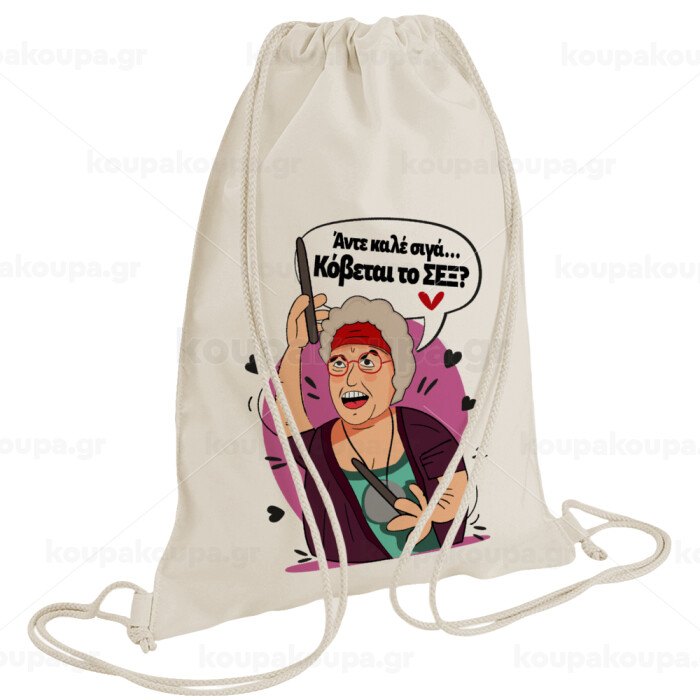 Αντε καλέ, σιγά, κόβεται το σέξ ;, Backpack bag GYMBAG natural (28x40cm)