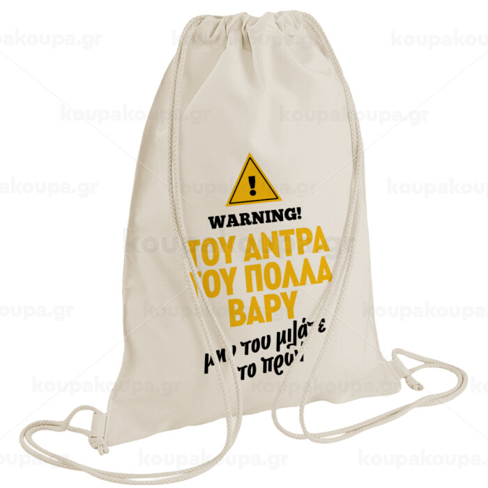 Του άντρα του πολλά βαρύ, Backpack bag GYMBAG natural (28x40cm)