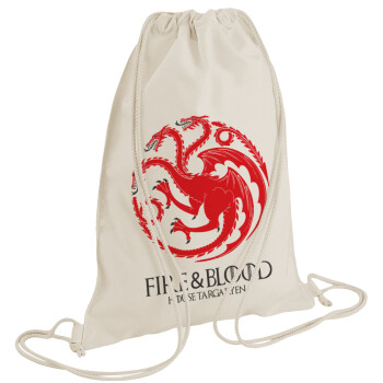 GOT House Targaryen, Fire Blood, Backpack bag GYMBAG natural (28x40cm)