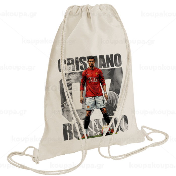 Cristiano Ronaldo (Κριστιάνο Ρονάλντο), Backpack bag GYMBAG natural (28x40cm)