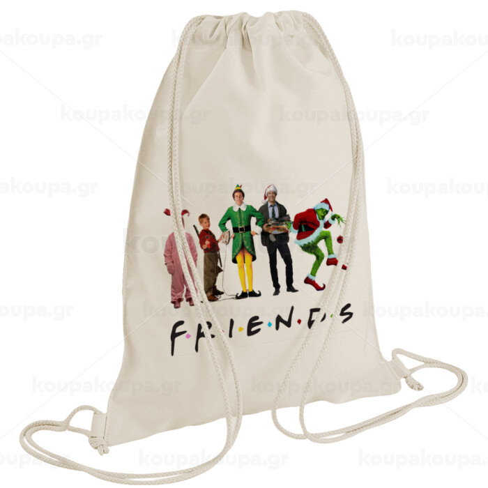 Christmas FRIENDS, Backpack bag GYMBAG natural (28x40cm)