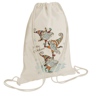 Christmas nordic gnomes, Backpack bag GYMBAG natural (28x40cm)