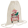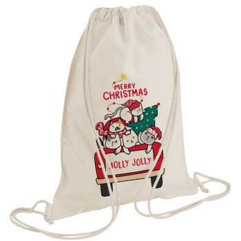 Merry Christmas cats in car, Backpack bag GYMBAG natural (28x40cm)