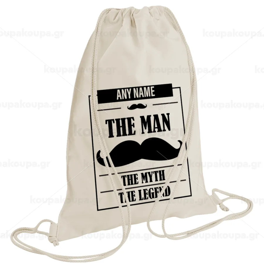 The man, the myth, Backpack bag GYMBAG natural (28x40cm)