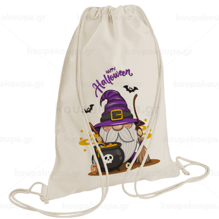 Happy Halloween (Χαλοουίν), Backpack bag GYMBAG natural (28x40cm)