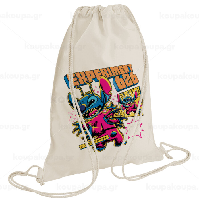 Stitch Experiment 626, Backpack bag GYMBAG natural (28x40cm)