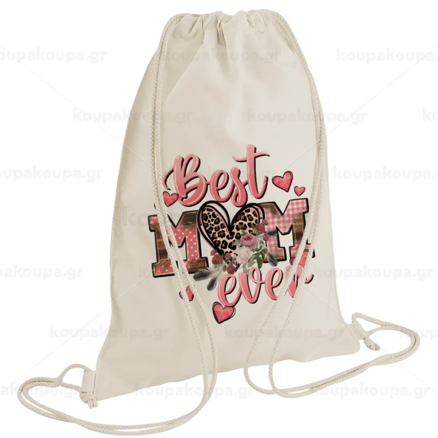 Sports backpack with dimensions 28x40cm. The drawstrings can be pulled to close the bag and then used as shoulder straps for carrying the bag.