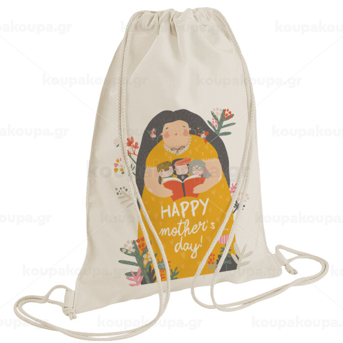 Cute mother reading book, happy mothers day, Backpack bag GYMBAG natural (28x40cm)