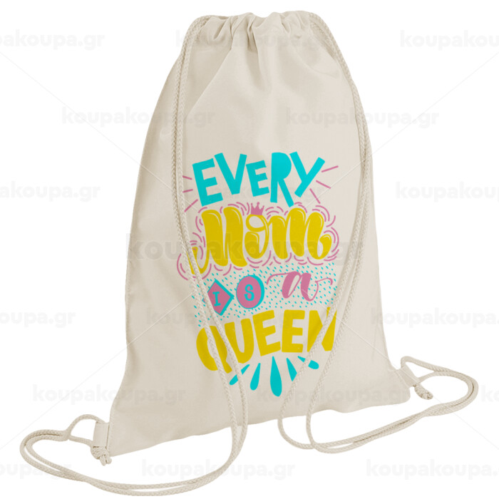 Every mom is a Queen, Backpack bag GYMBAG natural (28x40cm)