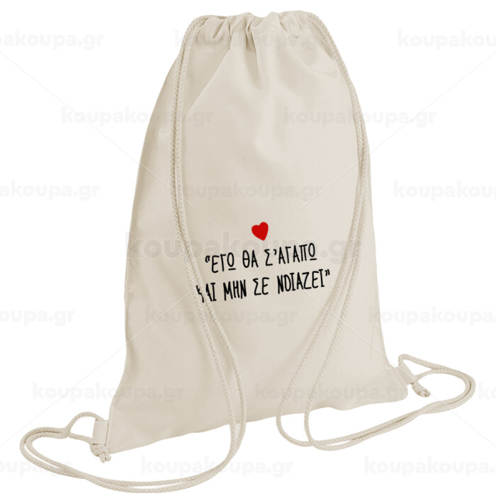 ΕΓΩ ΘΑ Σ’ΑΓΑΠΩ ΚΑΙ ΜΗΝ ΣΕ ΝΟΙΑΖΕΙ..., Backpack bag GYMBAG natural (28x40cm)
