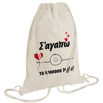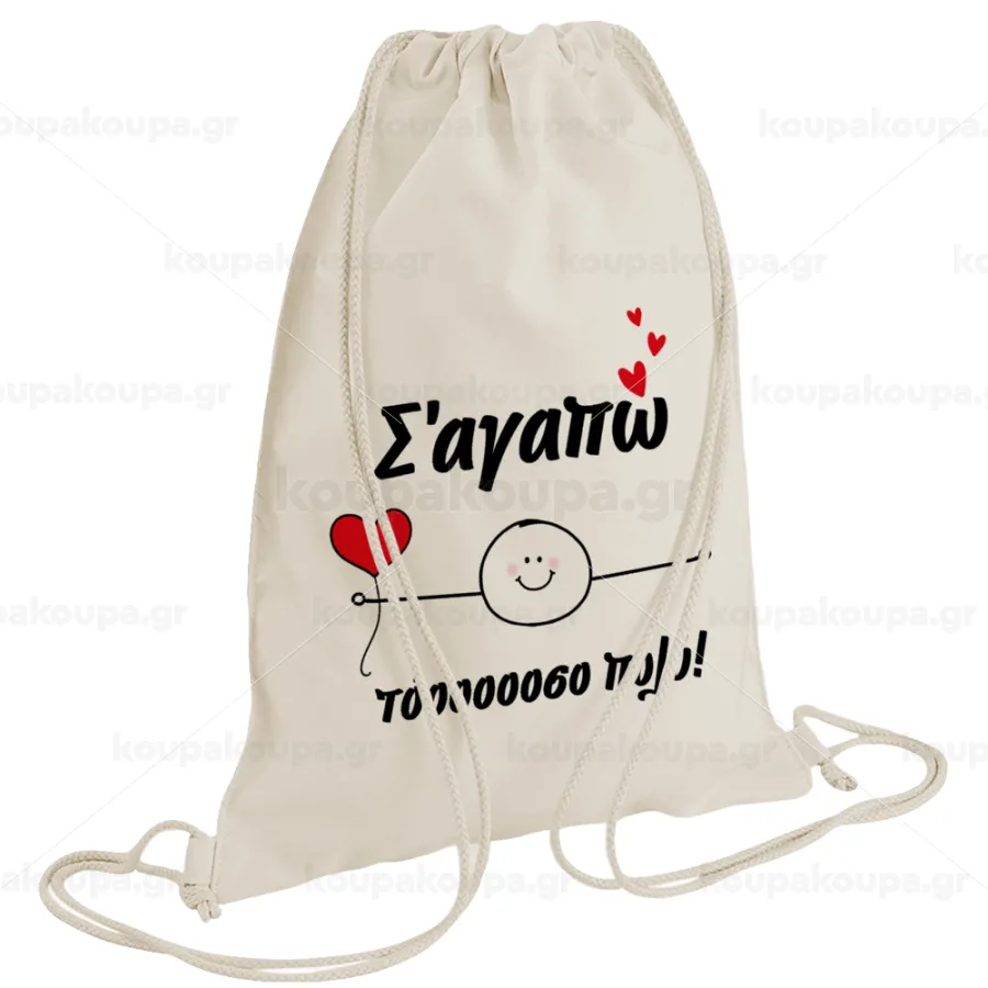 Σ΄αγαπώ τόοοοσο πολύ (Αγόρι)!!!, Backpack bag GYMBAG natural (28x40cm)