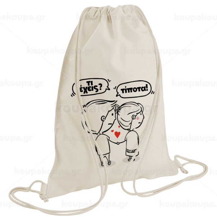 Τι έχεις? Τίποτα!, Backpack bag GYMBAG natural (28x40cm)