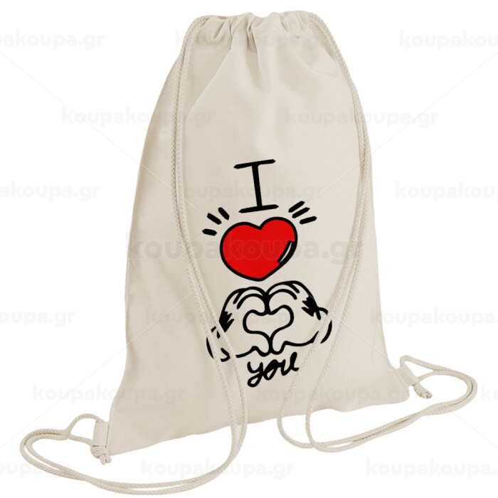 comics hands love, Backpack bag GYMBAG natural (28x40cm)