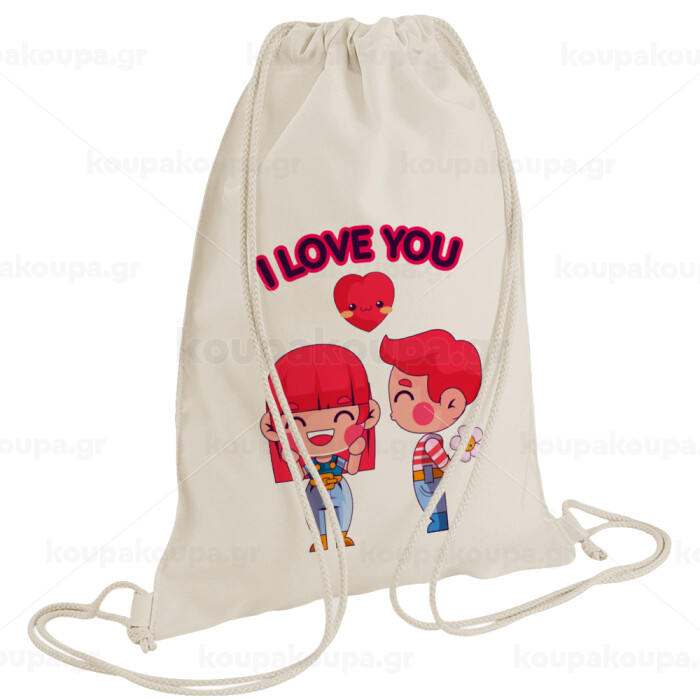 Couple, I love you, Backpack bag GYMBAG natural (28x40cm)